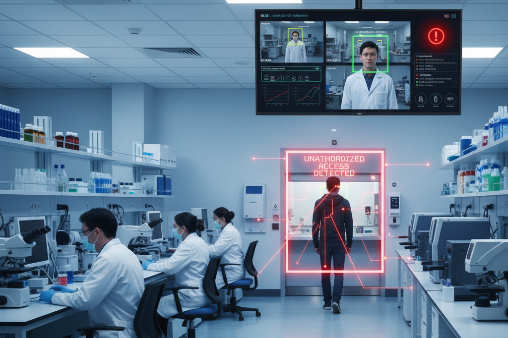 Detects unauthorized individuals in restricted areas such as pharmacies and storage rooms using unauthorized access detection, real-time alerts, and facial recognition.